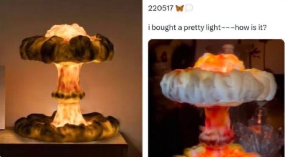 このランプのデザインが「キノコ雲」を意図していることは、その商品名からも明らかです。しかし、今回の炎上騒動の最大の焦点は、ニンニンがその背景にある歴史的な意味、すなわち広島・長崎への原爆投下という悲劇を認識した上で、このランプを「可愛い」と評し、日本のファンも閲覧する可能性のあるプラットフォームに投稿したのか、という点にありました。