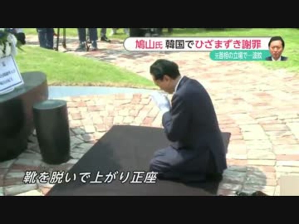 2015年、韓国での抗日象徴とされる西大門刑務所跡地を訪れ土下座謝罪。「元日本の総理として、日本人として、ここにきた。植民地時代の行為(刑務所収容等)を本当に申し訳なく思っている」などと発言しました。