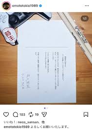 2人はそれぞれ、連名の報告文書にほないこかのドラムスティックと柄本時生が愛用するゲームコントローラーを並べた画像をアップしています。