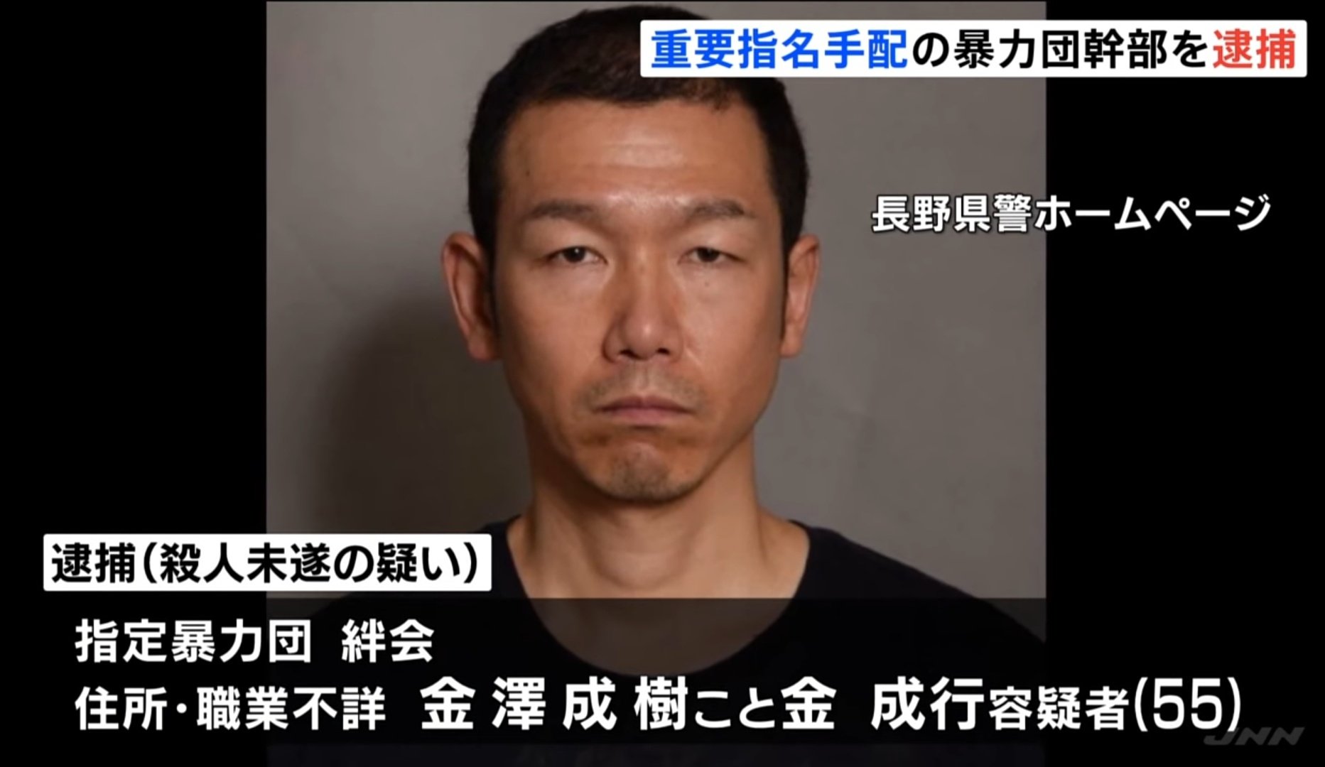長野県宮田村で銃撃事件を起こし指名手配されていた絆會最高幹部の金成行が逮捕されました。