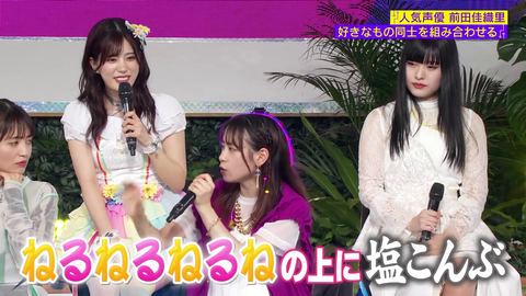 前田佳織里さんはテレビ番組に出演した際に、お菓子「ねるねるねるね」を白米の上にかけ、その上にさらに塩昆布をかけるという衝撃的な食べ方を紹介しました。