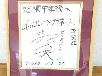 出身地愛が強い松尾駿さんらしく、2019年にはサプライズ的にこの箱根町立明星中学校を訪問された事があったそうです。サイン色紙もプレゼントされたそうで、生徒達も喜んでいたという事でした。