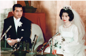 結婚式は渋谷区のカトリック渋谷教会で執り行われ、披露宴はホテルニューオータニで盛大に行われています。
