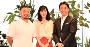 上の画像は、元高校球児の今吉晃一さん(高校生時の身長165cm)と、元プロ野球選手の斎藤佑樹さん(身長176cm)と長島三奈さんが並んで立っている画像です。