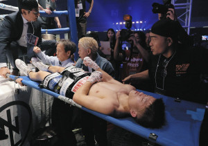 青コーナーに戻って椅子に座ったが意識を失って体に力が入らなくなり、前回と同じく担架に乗せられて退場。医務室でも意識が戻ることはなく、救急車で大阪市内の病院へ救急搬送された。検査で脳出血が確認されたため、すぐに緊急手術を受けた。一度も意識は戻っていない。JBCは開頭手術を受けた選手の試合を許可しておらず、引退となる。