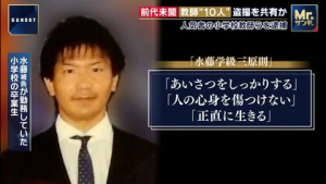 引用:「両親は元校長で人格者」「4歳くらいから九九が言えて頭がよかった…」生徒のリコーダーに体液を混入させた水藤翔太被告の華麗なる経歴〈変態教員グループに閣僚も怒り〉