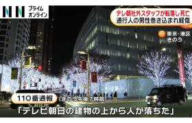 テレビ朝日は取材に「本社社屋より転落したとみられ死亡した男性は当社の社外スタッフです。事案の詳細につきましては、現在警察が捜査中です。当該スタッフが亡くなられたことに心よりお悔やみ申し上げます」と答えた。