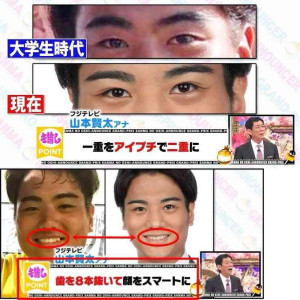 引用:「顔をイジってる」フジ山本賢太アナ、ぱっちり二重&20キロ激痩せ&8本抜歯で顔面大激変 意外な過去に驚きの声|ニュース|ピンズバNEWS