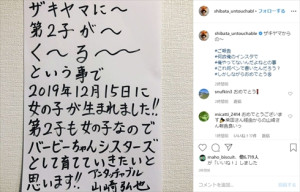 柴田のインスタを通じて山崎は「ザキヤマに~第2子が~く~る~という事で2019年12月15日に女の子が生まれました!!」と報告。「第2子も女の子なのでバービーちゃんシスターズとして育てていきたいと思います!! アンタッチャブル 山崎弘也」と記した。