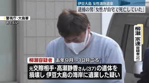 引用:逮捕の柳瀬宗達容疑者「遺体見つかれば島に住めなくなる」 交際トラブル?高瀬静香さん(37)の口座に“慰謝料”振り込みも 東京・伊豆大島の女性遺骨遺棄事件